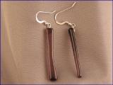 Pink bottle shaped fused glass earrings w/dichroic encased with clear